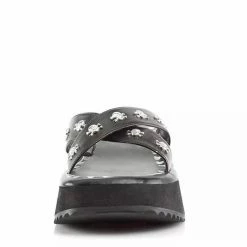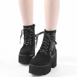 Gothic Dark Round Toe Platform Skull Printed Patent Leather Mary Jeans Pumps With Hook & Loop