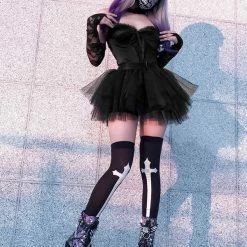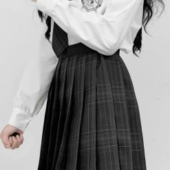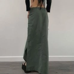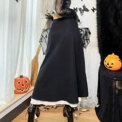 Gothic Punk Style Pockets Decorated Belt Metal Rings High-rise Long Skater Skirt With Elastic Waist