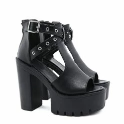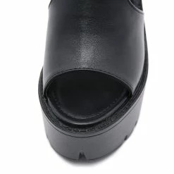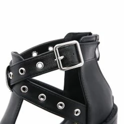 This black sandals made by rubber sole. 5.1 inches heel height. The elements of industrial style sandals are in it, ankle strap, peep toe, chunky heel and cutout. You are the cool and statement man. Steady platform brings comfort to you , making you relax for one day. Chunky heel could let your legs slimmer and optimize your body ratio. You are the one.