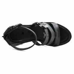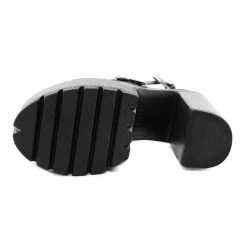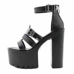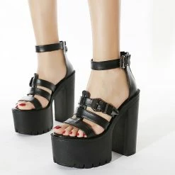 Rubber sole. Heel measures approximately 5.7 inches. Platform measures about 2.5 inches. Ankle strap round toe chunky high heel sandals make your feet relax for one day. Steady chunky heel with round toe pattern keeps your balance, providing soft lining and cushioned footbed, and release your worry of hurts during walking. The unique design will make you different from each others. Belt design will make you feet thinner visually.