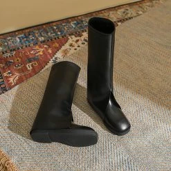 Rubber sole. 1.77 inches heel height. You are the cool and statement man. Steady chunky platform brings comfort to you , making you relax for one day. Chunky platform could let your legs slimmer and optimize your body ratio. You are the one.Every outfit will be pairs with these adorable shoes. These are easy to match with jeans, skirt and your versatile for dressy or casual wear.With Kistania Branding, genuine leather material.