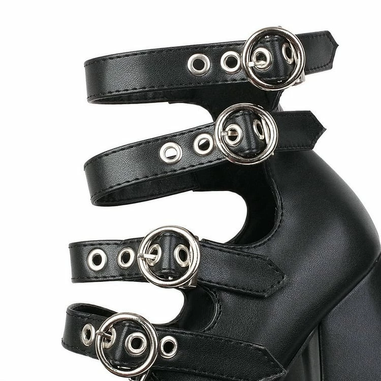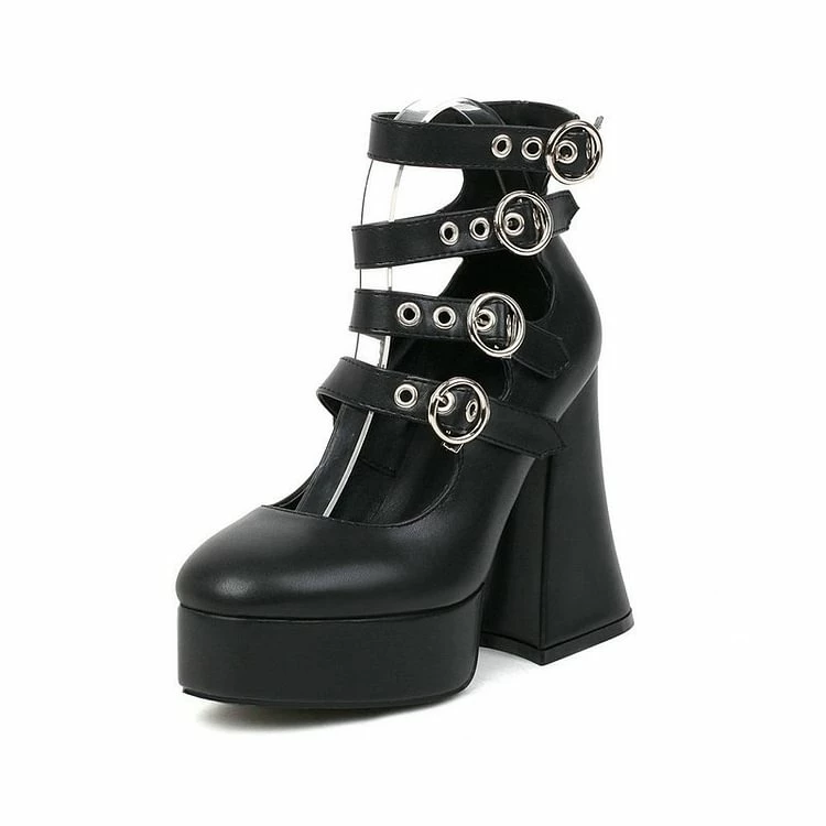 Buckle Straps Flared Heels Pointed Toe Mary Jane