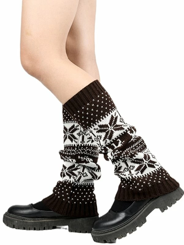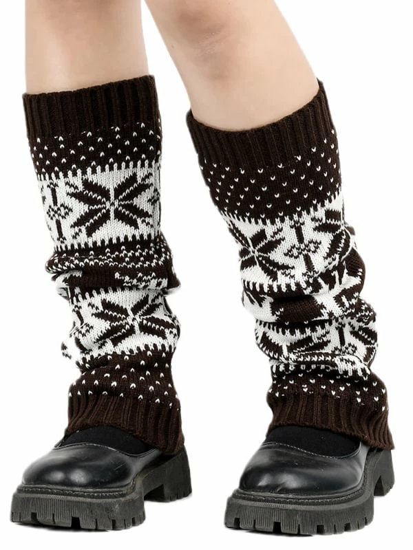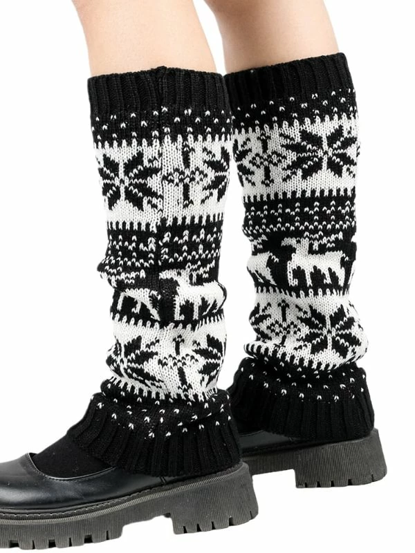 Christmas Costumes Snow & Elk Intarsia Knitted Leg Warmers