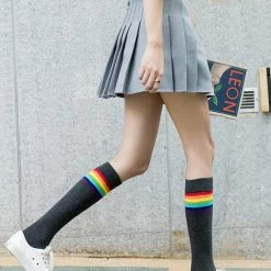 College Style Rainbow Stripes Over The Knee Knitted Stockings