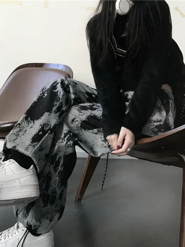 The loose pants, dark punk style, appeals attention. The material of pants is cotton, durable and comfortable to improve its texture. Tie-dye adds sense of mystery. The high rise design highlights your waist and optimize your body ratio. The wide leg loose pants is easy to put on and get off. You could wear it anytime. Everyone could try something new. If you do not have this attempt, please do it.
