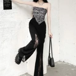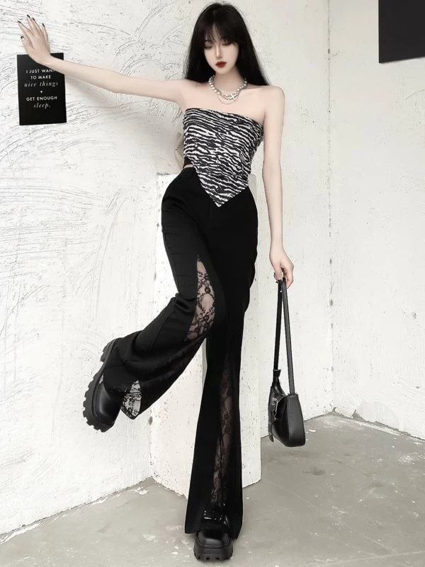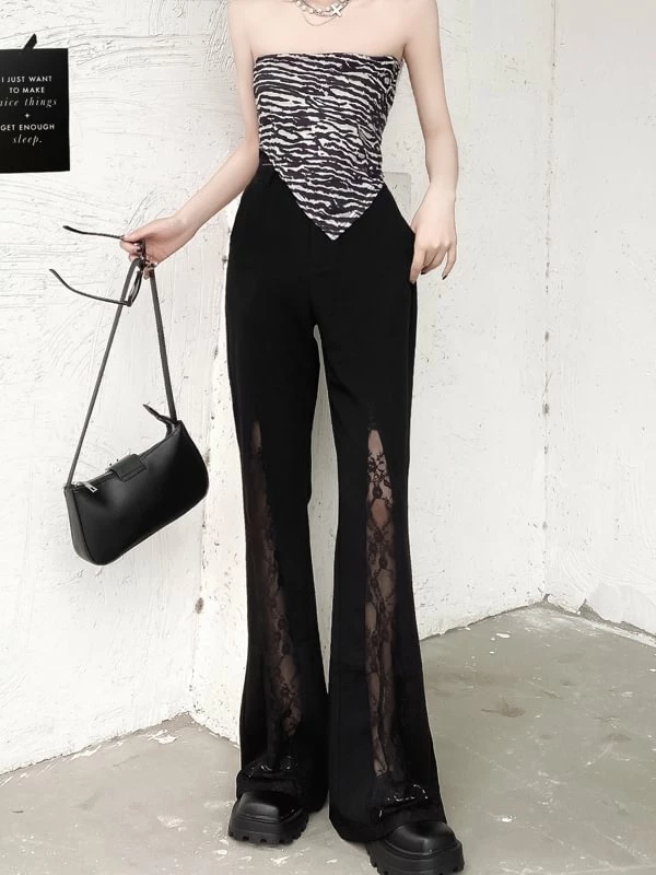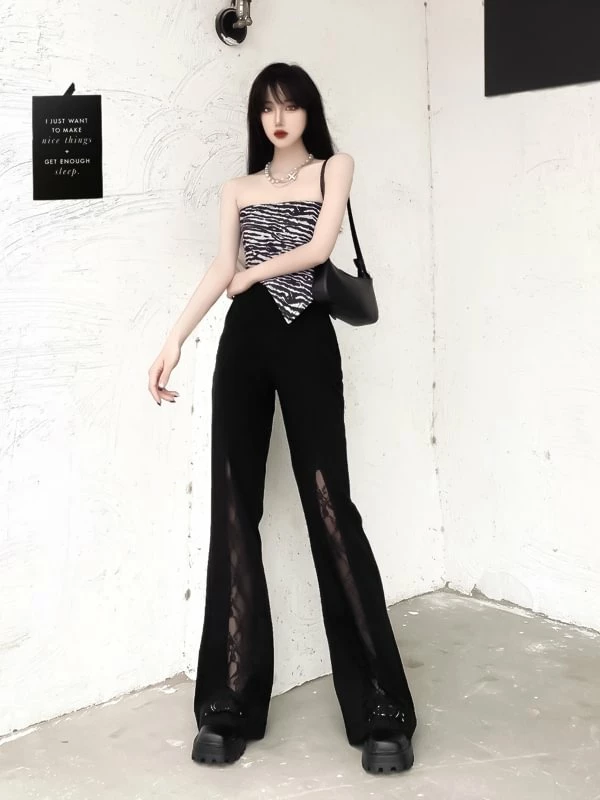 Chic Cute Cartoon Street Fashion Graphic Printed Metal Decorated Straight Pattern High Rise Pants