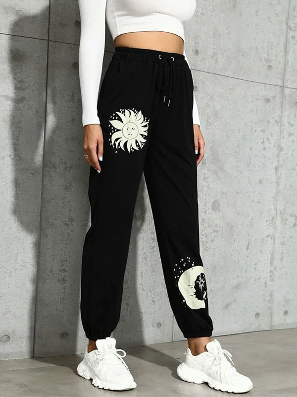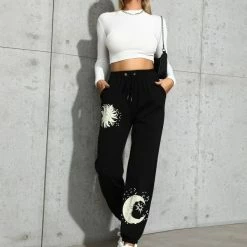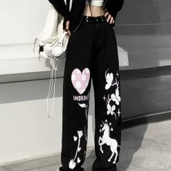 Chic Cute Cartoon Street Fashion Graphic Printed Metal Decorated Straight Pattern High Rise Pants