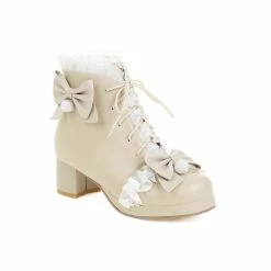 Elegant Girl White Tattoo Style Stitching Paneled Pointed Toe Kitty Heel Boots