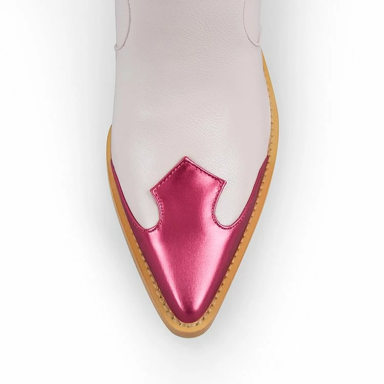 Fashion Color Block Paneled Stitching Wooden Heel Western Boots