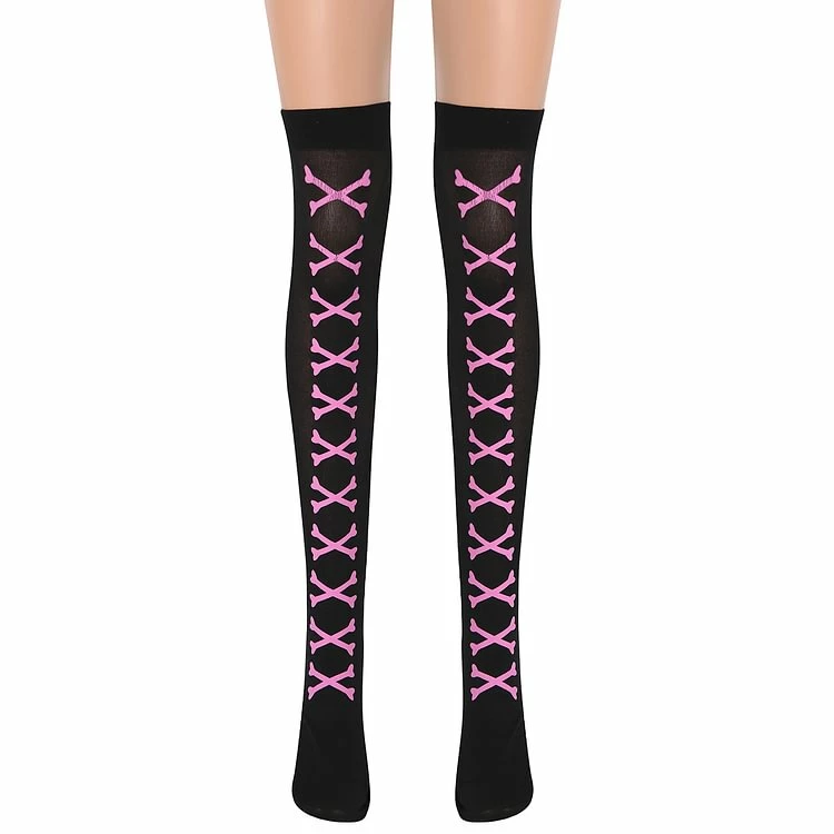 Fashion Color Block Skeleton Printed Stockings