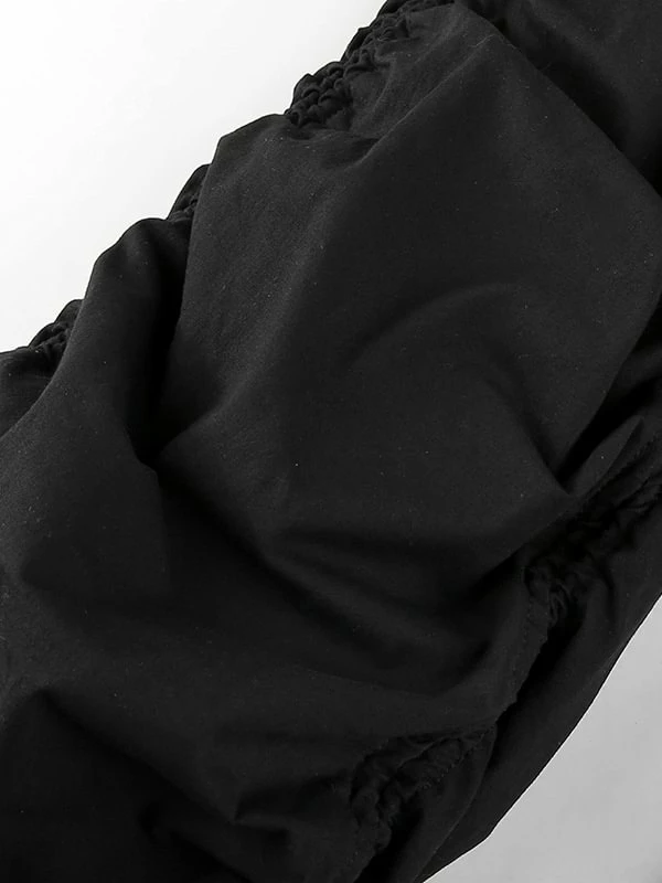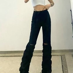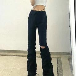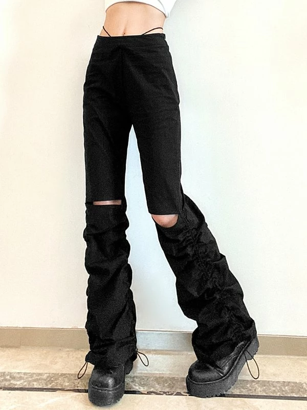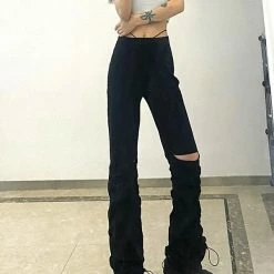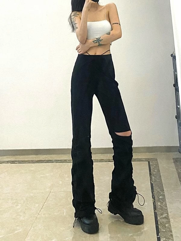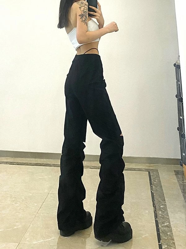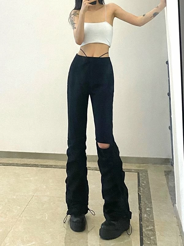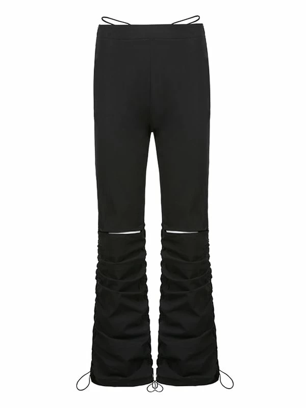 The flare pants, dark punk style, appeals attention. The material of pants is premium material, durable and comfortable to improve its texture. Cutout and gathered drawstring add clothing details. The high rise design highlights your waist and optimize your body ratio. The pair of flare is easy to put on and get off. You could wear it anytime. Everyone could try something new. If you do not have this attempt, please do it.