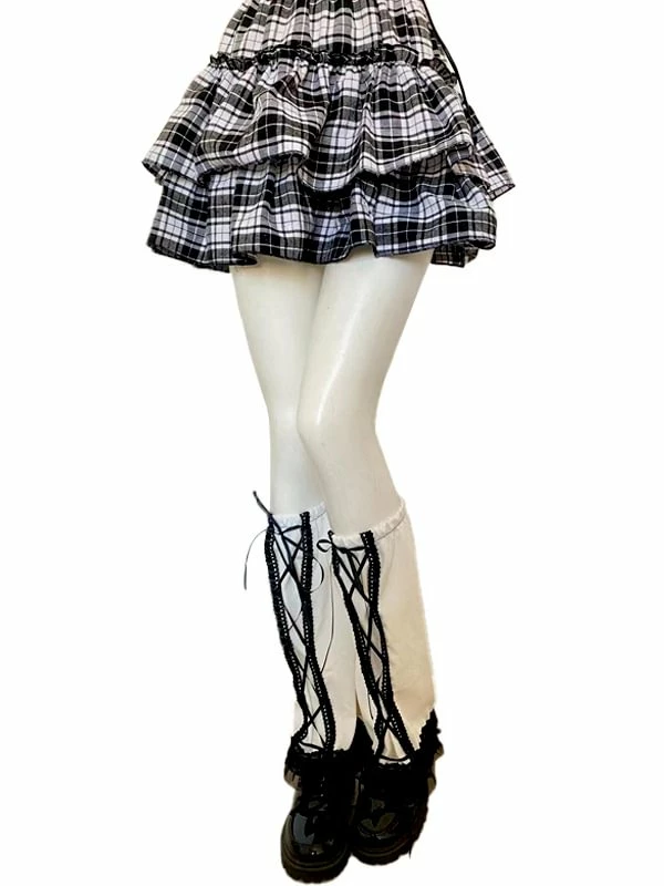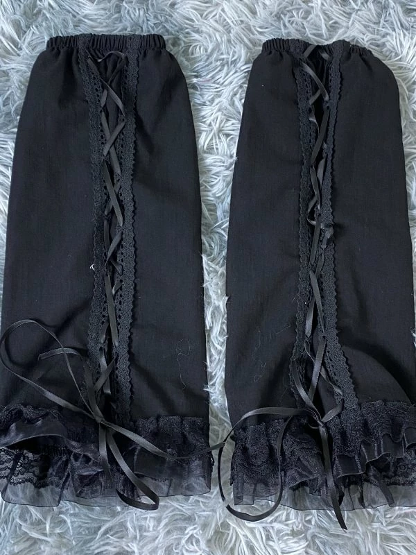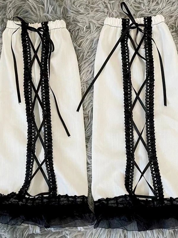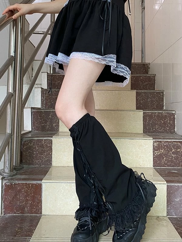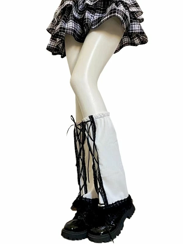 JK Style Solid Color Lace Paneled Lace Up Leg Warmers