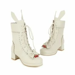Lolita Girl Bunny Bowknots Lace Up Chunky Heel Martin Boots