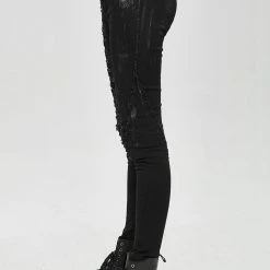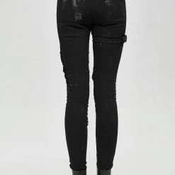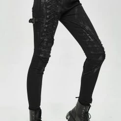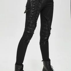 Style:Punk mecha hand painted laced up legs cool women pants