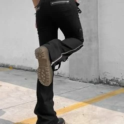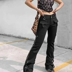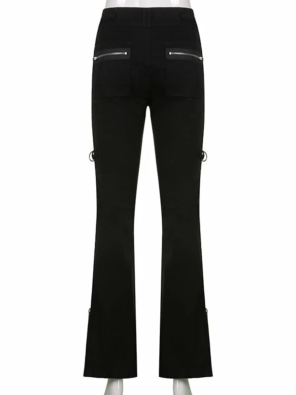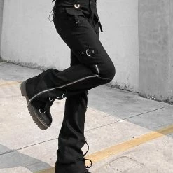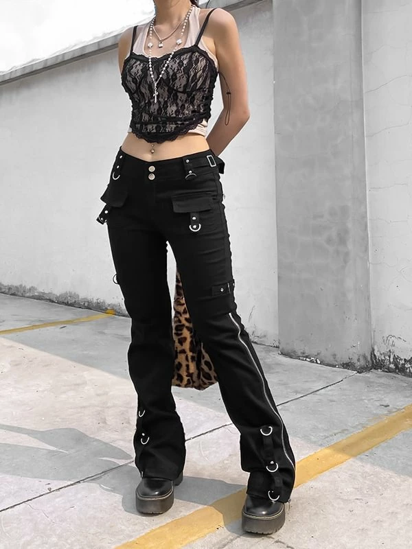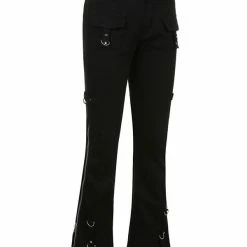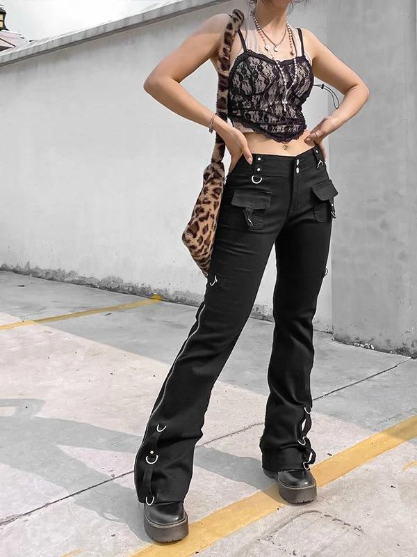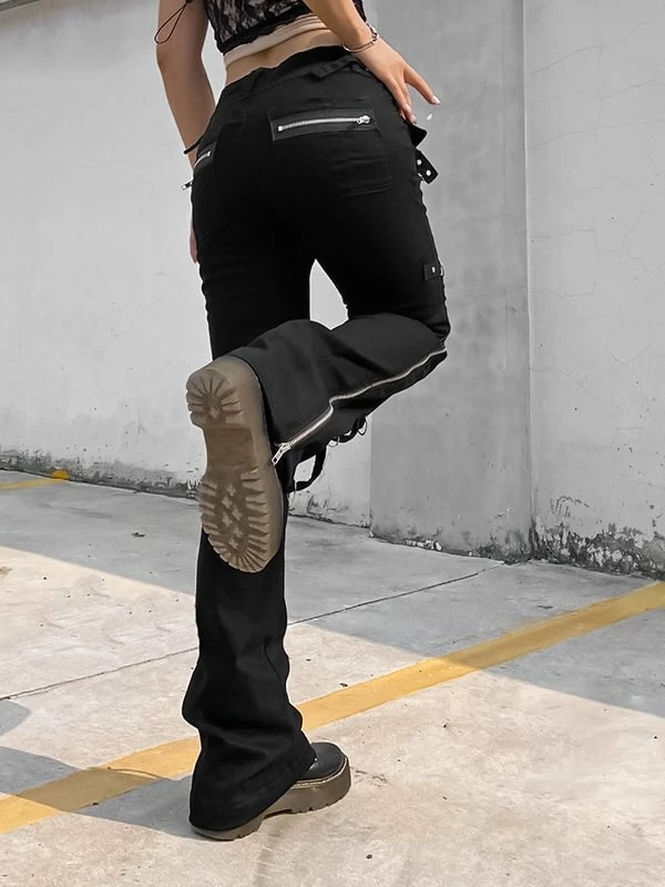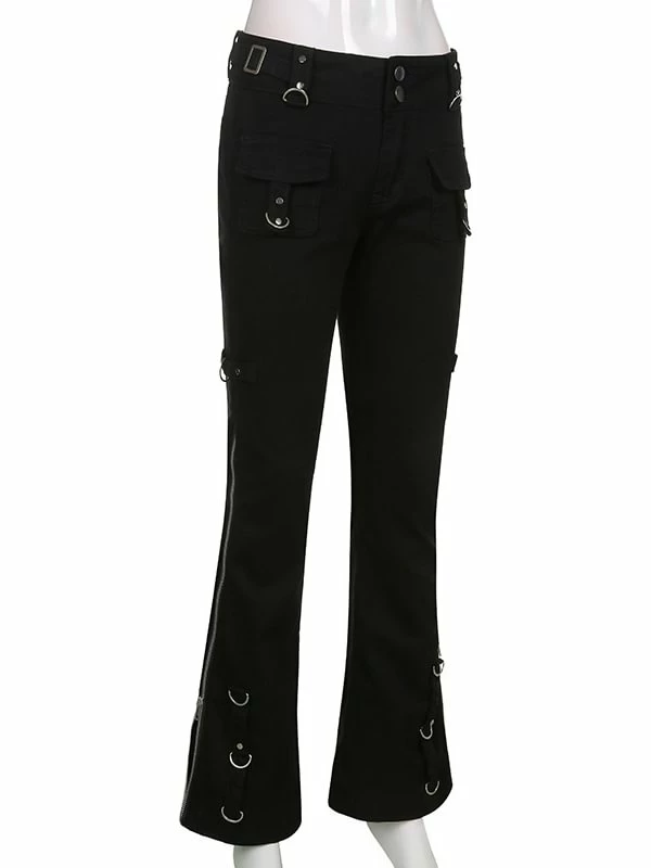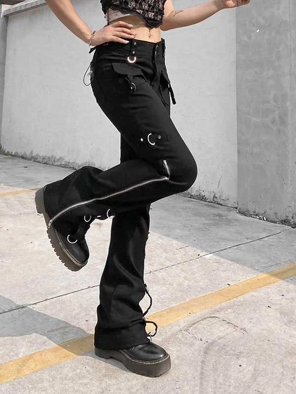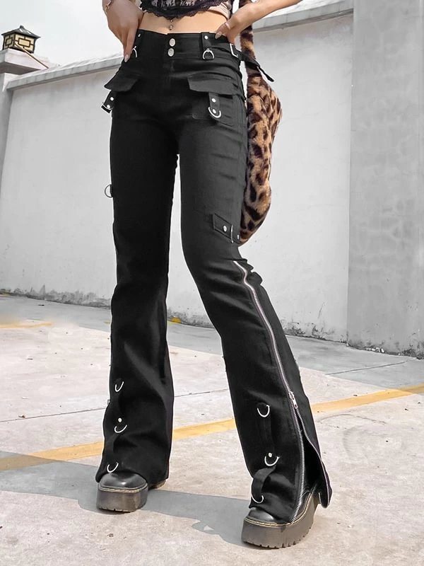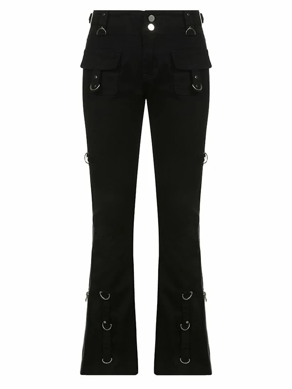 The flare, dark punk style, industrial street fashion pants. The material of pants is premium material, durable and comfortable to offer a nice wearing experience. Multi-pockets and metal rings decorated add metallic feeling. Side zipper could adjustable and you can shape your own style. High rise design optimize your body ratio visually and highlight your waist. It is casual but statement. The flare is easy to put on or get off. You could wear it anytime. Everyone could attempt new style. If you not, please do it.
