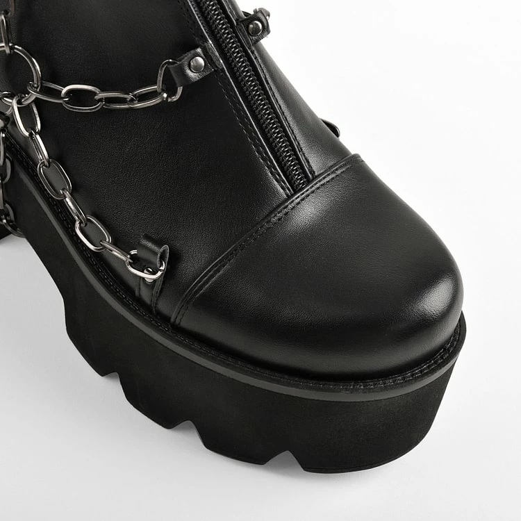 Classic pattern is still attracting people’s attention, solid black color, multichains, lace-up decorated. You are the cool and statement woman. Steadibility brings comfort to you , making you relax for one day. 12 sizes are offered to fit your feet.Every outfit will be pairs with these adorable shoes. These are easy to match with jeans, skirt and your versatile for dressy or casual wear.With Kistania Branding, premium PU material.