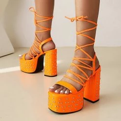 Be the first to review “Party Rivets Lace Up Platform Chunky Heel Sandals” Cancel reply