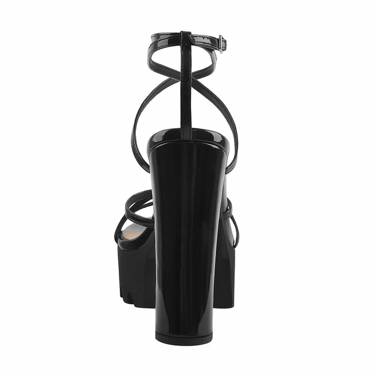 This gothic sandals made by rubber sole. 6.3 inches heel height. The elements of industrial style sandals are in it, patent leather, strappy and platform.You are the cool and statement man. High platform brings comfort to you , making you relax for one day. Chunky heel could let your legs slimmer and optimize your body ratio. You are the one.