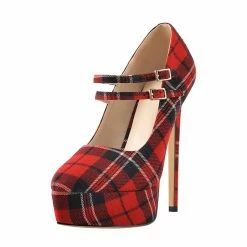 This fashion pumps made by rubber sole. 5.5 inches heel height. The elements of industrial style pumps are in it, plaid pointy, platform, slip on, stiletto and round toe. You are the cool and statement man.Steady platform brings comfort to you , making you relax for one day. High stiletto heel could let your legs slimmer and optimize your body ratio. You are the one.