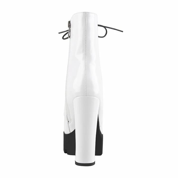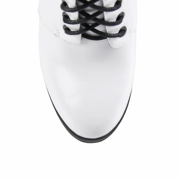 The elements of industrial style boots are in it, PU, lace-up, cross chain-trimmed and belts with key-holes. You are the cool and statement woman. Steady chunky platform brings comfort to you , making you relax for one day. Chunky platform could let your legs slimmer and optimize your body ratio. You are the one.