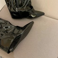 Pointed Toe High Heel Wedge Cover Up Fold Side Zipper Over Knee High Boots