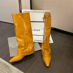 Be the first to review “Pointed Toe High Heel Wedge Cover Up Fold Side Zipper Over Knee High Boots” Cancel reply