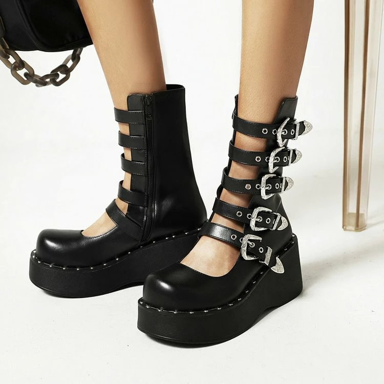 Punk Metallic Cutout Rivets Straps Platform Sandals