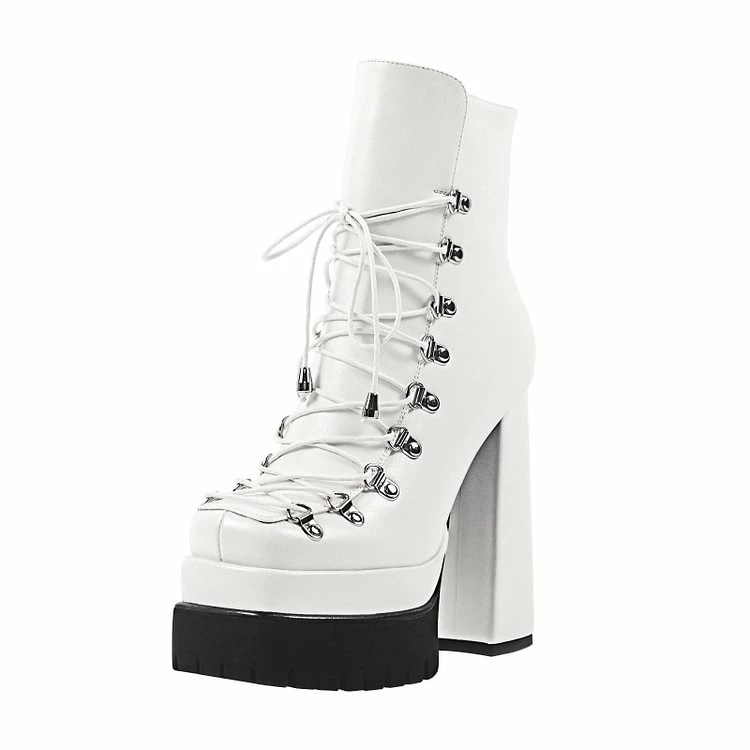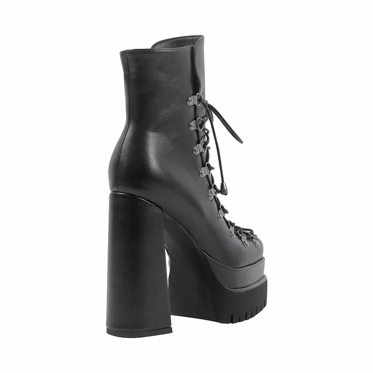 Punk Paneled Lace Up Platform High Chunky Heel Boots