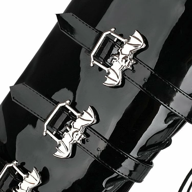 Punk Statement Bat Straps Decoration High Chunky Heel Platform Over The Knee Boots