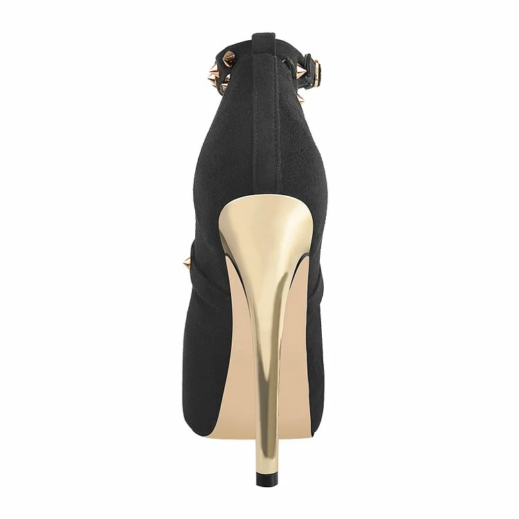 This gothic pumps made by rubber sole. 6.3 inches heel height. The elements of industrial style pumps are in it, suede,rivets,platform and stiletto. You are the cool and statement man. Steady chunky platform brings comfort to you , making you relax for one day.Stiletto high heel could let your legs slimmer and optimize your body ratio. You are the one.