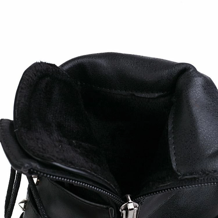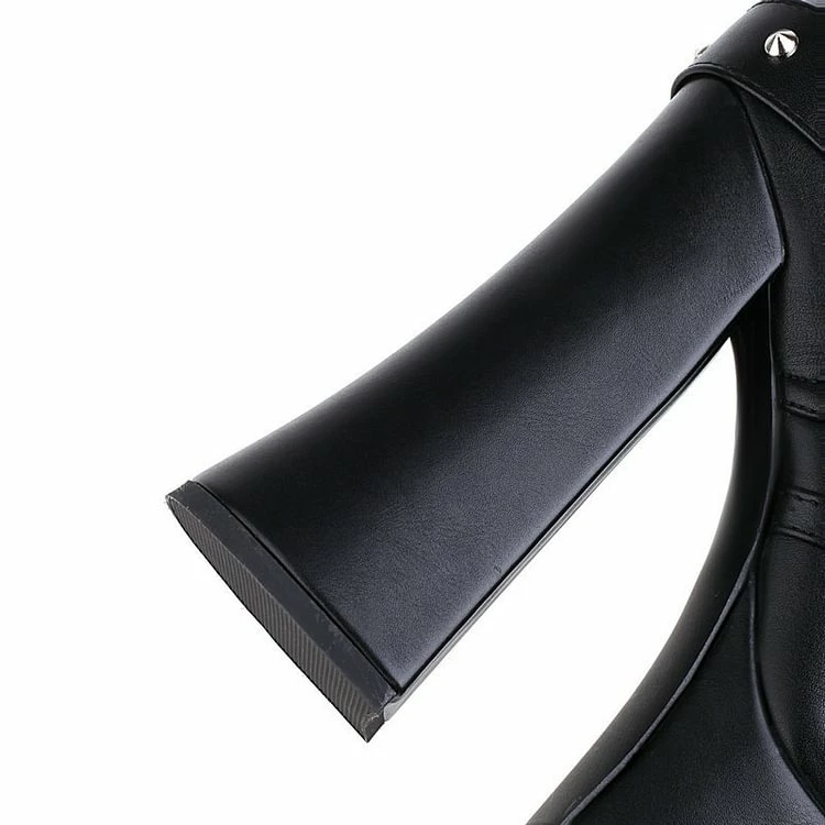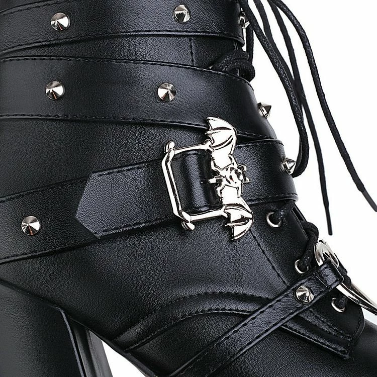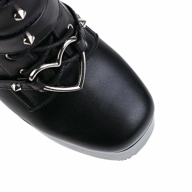 Rivets Straps Lace Up Hoof Heels Platform Boot
