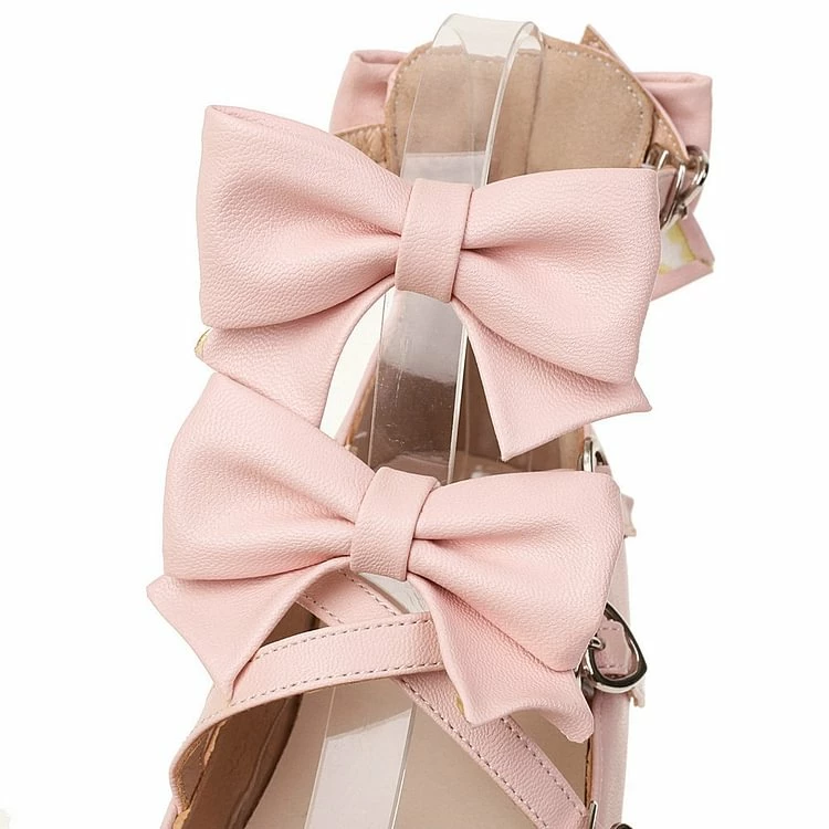 Sweet Bowknots Cross Straps Round Toe Platform Mary Jane