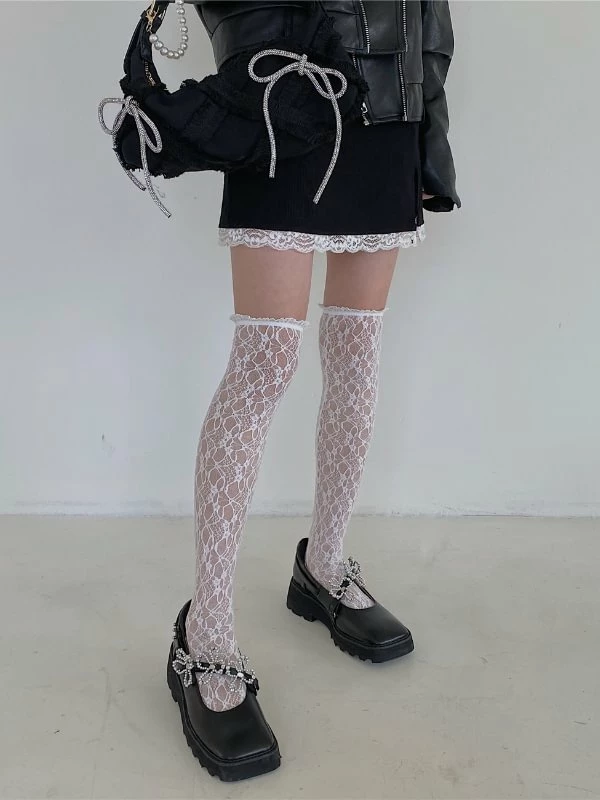 Sweet Lolita Style Basic Design Knee High Lace Stockings