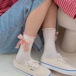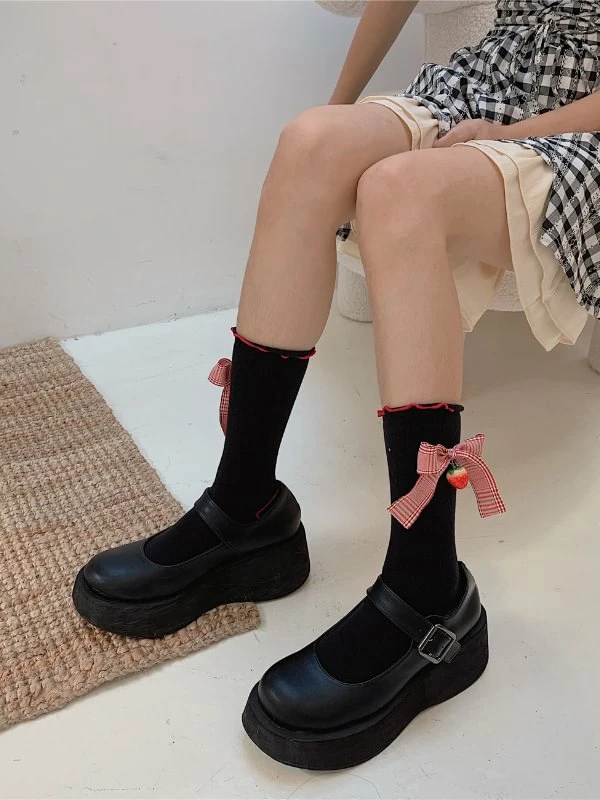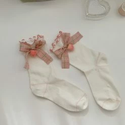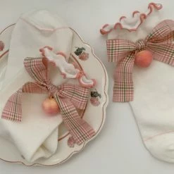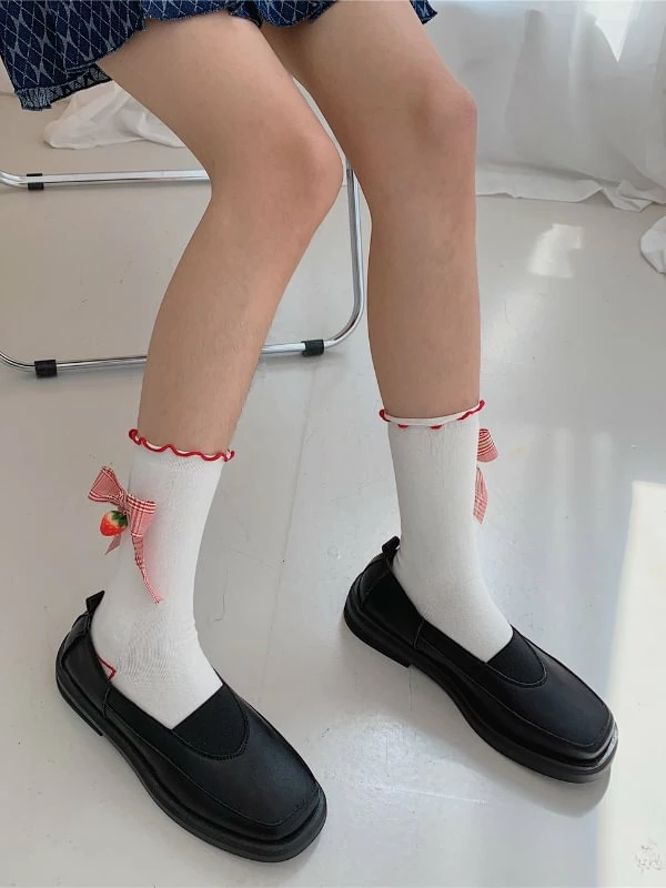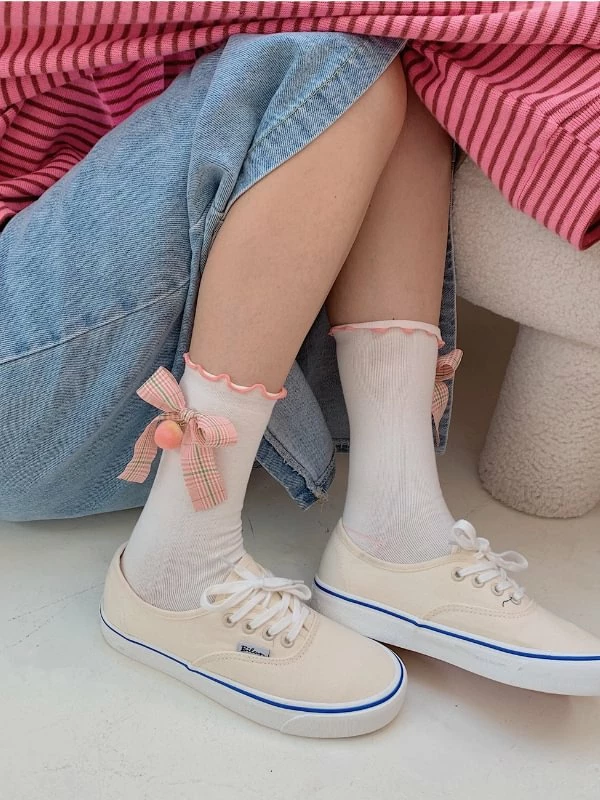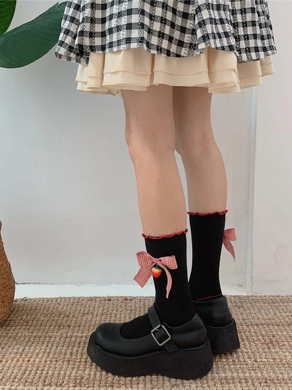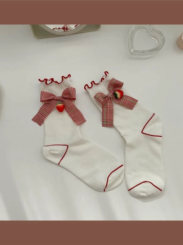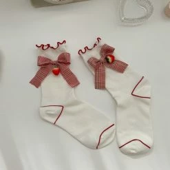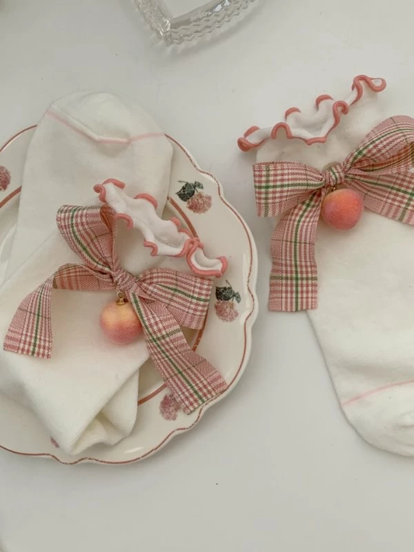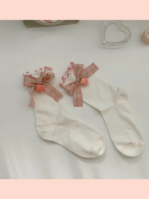 Y2K Chic Cute Sweet Girl Ruffled Bowknots Decorated Fruit Pendant Stockings